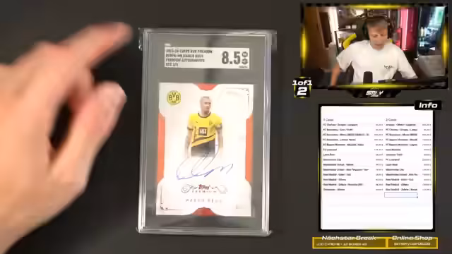 02:57:43Die Spannung während der Live-Ziehungen von Trading Card Boxen ist ein prägendes Element des Streams. Dies zeigt sich bei der Ziehung von Victor Bonnins Rookie-Karte zu 5, die den Streamer sehr emotional bewegt, da es seine erste Karte dieses Preissegments ist. Später folgt der euphorische Moment, als zum d Mal die seltene 'Munich at Night'-Karte aus einer Box gezogen wird, was er als 'geisteskrank' bezeichnet. Diese glücklichen und unerwarteten Hits sind die emotionale Belohnung für die Community und den Streamer selbst.