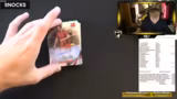 03:43:36Nachdem der erste Break abgeschlossen ist, wird mit Box 5 das Öffnen fortgesetzt. Immer wieder ziehen hochwertige Karten wie Marco Grün, Pascal Groß und ein Harry Kane Top Eleven aus den Boxen. Parallel dazu wird intensiv über das Öffnungsformat diskutiert. Der Streamer äußert den Wunsch, statt 20er Packs lieber 4er-Packs zu öffnen, um schneller voranzukommen. Er kritisiert das langsame Öffnen und Verpacken der Karten, die zusammenkleben, und vergleicht das Tempo mit anderen Streamern, wie Tone, der am Vortag einen extrem langen Stream absolviert hat.
