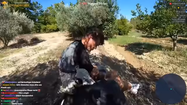 05:33:15Der Streamer nimmt bei seiner Rast unbekümmert Wasser aus einem unbekannten Behälter auf und spricht eine persönliche, humorvolle Frage an den Chat: Wer von den Frauen im Chat würde ihn als Single daten? Ein kleiner Teil der Chatuser zeigt Interesse. Im Anschluss werden ungewöhnliche Geräusche aus dem Off gelistet, ein umfassender Befehl zur Vorstellung der Equipment-Liste angekündigt und eine deutliche Verärgerung über die finale Kilometeranzahl für den Tag von 17,5 Kilometern anstelle der erwarteten 37 Kilometer geäußert.