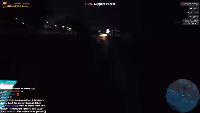 07:24:53Nach einem anstrengenden Tag, an dem der Streamer 26 Kilometer zurücklegte, nähert er sich dem Zielort. Die Landschaft wechselt und er erreicht einen touristisch geprägten Bereich, in dem viele Hotelkomplexe und Wasserparks zu finden sind. Das Hotel selbst, in dem er eincheckt, wird vom Streamer als hässlich und einem 'Aldi-Heim' ähnlich beschrieben. Er kauft in einem kleinen Markt ein und zeigt sich von der Touristeninfrastruktur beeindruckt und zugleich überwältigt.