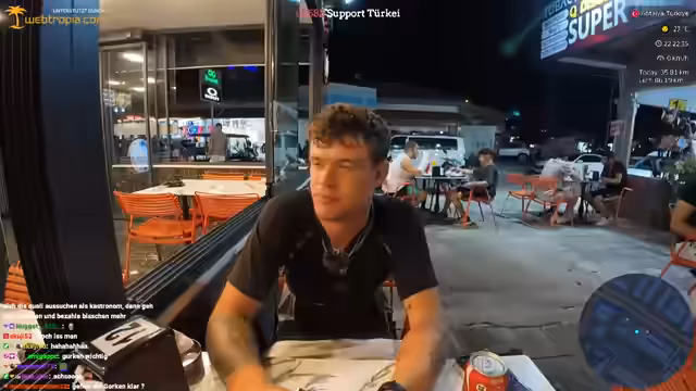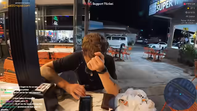 00:34:48Der Streamer erzählt Anekdoten aus seiner Zeit in der Türkei, darunter Begegnungen mit acht Türkinnen und den mysteriösen Fall des Zuschauers Rolf. Rolf hatte sich eine halbe Bibel voller Tour-Pläne und Ideen geschickt, ihn sogar per Anhalter besucht, letztendlich aber den geplanten Lauf mit dem Streamer nicht durchgehalten und stattdessen wieder nach Istanbul zurückgekehrt. Der Streamer bezeichnet Rolf als polarisierende Figur, die einen bleibenden Eindruck hinterlassen hat.