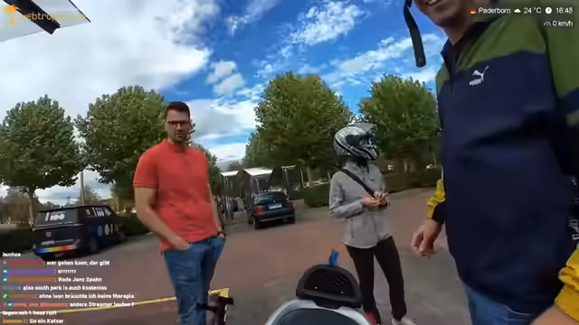 06:47:05Es wird überlegt, ob man eine Pommesbude in Warendorf besuchen soll, die angeblich die beste Currywurst in NRW hat. Mali war zunächst begeistert, möchte aber wegen der Entfernung nicht umkehren. Der Chat schlägt eine Currywurstbude in der Nähe vor, aber der Streamer entscheidet sich dagegen, da es ein zu großer Umweg wäre und Mali lieber in Münster essen möchte. Stattdessen wird ein McDonald's-Menü gegessen, das ein Zuschauer geschenkt hat. Der Streamer erwähnt, dass er Mali ein wenig zum Essen zwingen muss, da sie hauptsächlich asiatische Küche bevorzugt. Er plant, den Akku zu wechseln und spricht über die Verkehrssituation in Thailand im Vergleich zu Deutschland, wo man als Fußgänger vorsichtig sein muss. Das Ziel der Roller-Tour ist Enschede in den Niederlanden, danach soll es ohne Roller weiter nach Den Haag und möglicherweise Amsterdam gehen. Der Roller soll in der Nähe von Enschede auf deutscher Seite abgestellt werden, und der Streamer bittet Zuschauer um Hilfe bei der Unterbringung des Rollers.