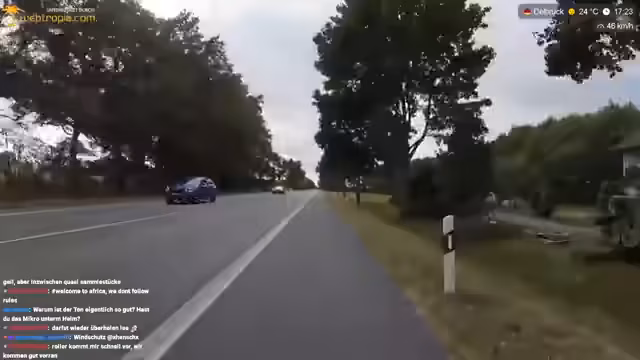 04:58:57Der Chat wird nach Bierlieferungen gefragt. Es wird betont, dass kein Alkohol am Steuer konsumiert wird, um der Vorbildfunktion gerecht zu werden. Es wird kurz über die Schuldfrage bei Unfällen unter Alkoholeinfluss diskutiert, wobei betont wird, dass im Ausland oft anders gehandelt wird. Der Ölstand des Rollers wird überprüft und gegebenenfalls aufgefüllt. Es wird über die Navigation nach Münster diskutiert und festgestellt, dass die Autostrecke zwar chillig ist, aber möglicherweise nicht legal befahren werden darf. Ein Vergleich mit Thailand wird gezogen, wo es spezielle Roller-Routen in Google Maps gibt. Der Streamer erzählt von seinen Roller Erfahrungen in Bali. Er kritisiert Autofahrer, die sich nicht an die Verkehrsregeln halten und unnötig hupen, was zu Frustration führt. Er erwähnt, dass er keinen Motorradführerschein besitzt und es schade findet, da er seinen angefangenen Führerschein nach dem Tod seines Vaters abgebrochen hat.