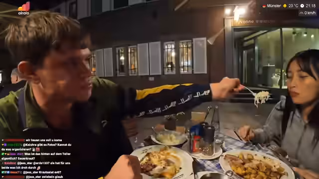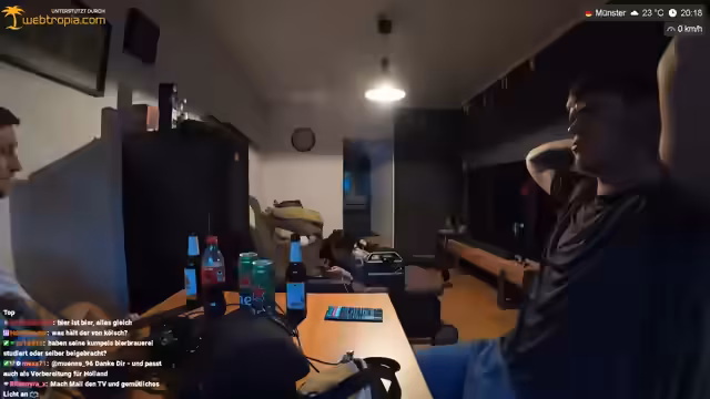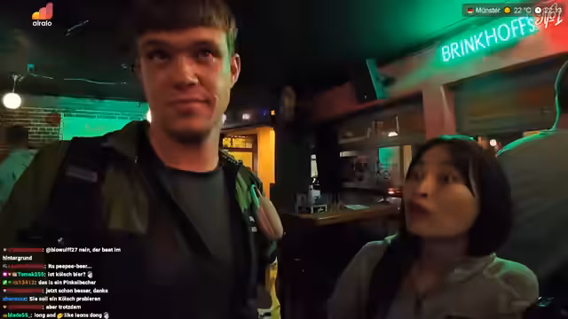 08:10:21Mali wird gefragt, ob sie etwas trinken möchte und entscheidet sich für ein deutsches Restaurant. Tobi empfiehlt die Köpi-Stuben für deutsche Küche zu einem guten Preis. Er erzählt, dass es zwischen Münster und Osnabrück eine Rivalität gibt, insbesondere unter Fußballfans. Tobi findet Münster schöner als Osnabrück, aber die Leute in Osnabrück netter. Er erwähnt, dass es in Münster viele wohlhabende Leute gibt, insbesondere im Ärzteviertel. Der Streamer macht sich ein thailändisches Bier auf. Tobi kennt sich mit Bier aus und findet Spatenbier gut. Er erzählt, dass es in der Stadt einen asiatischen Laden gibt, in dem man Lebensmittel kaufen kann. Der Streamer fragt Mali, ob sie etwas essen gehen möchte und schlägt ein deutsches Restaurant vor. Tobi verabschiedet sich und die beiden planen, etwas essen zu gehen und dann zu schauen, was sie noch unternehmen.