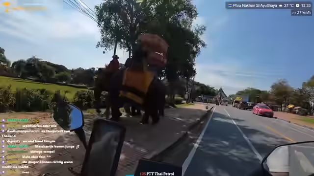 00:33:43Nachdem der Streamer mit Mali telefoniert hat, die erst später zum Tempel kommen kann, beschließt er, in der Zwischenzeit andere Tempel zu erkunden. Er äußert sich kritisch über die Moderationspolitik anderer Streamer und betont, dass in seinem Kanal Respekt und Menschenwürde wichtig sind. Während der Fahrt zum nächsten Tempel stößt er auf Elefanten, die Touristen tragen. Er äußert seine starke Abneigung gegen diese Form der Tierquälerei und betont, dass dies nicht artgerecht ist. Er weist darauf hin, dass Elefanten in Thailand oft unter Zwang Touristen tragen und empfiehlt stattdessen, Elefanten in artgerechten Freigehegen zu besuchen, wie sie beispielsweise in Chiang Mai existieren. Er kritisiert, dass viele Touristen, insbesondere Europäer, sich dieser Praktiken nicht bewusst sind oder sie ignorieren.