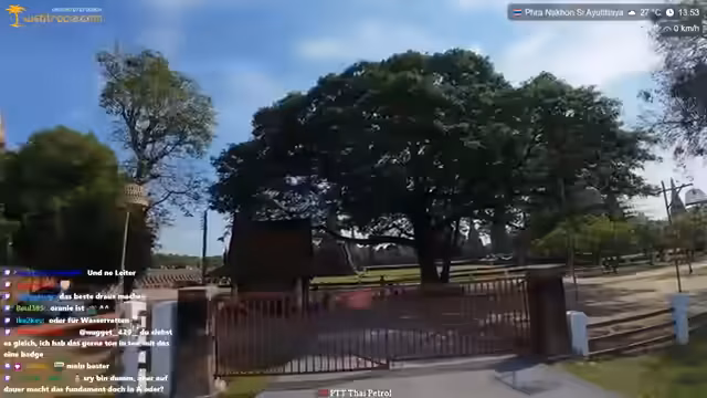 00:08:10Der Streamer startet den Tag mit einem „Tempel-Run“ in Ayutthaya, der ehemaligen Hauptstadt Thailands, bekannt für ihre uralten Tempel. Trotz der Hitze plant er, die kulturellen Stätten zu erkunden. Er überlegt, einen E-Scooter zu mieten, um die Gegend zu erkunden, und fragt nach den Preisen und der Funktionsweise des Elektrorollers. Nach einer kurzen Verhandlung über die Mietdauer und den Preis entscheidet er sich für den E-Scooter. Er testet das Fahrgefühl und die Gänge des ungewöhnlich schnellen Elektrorollers und vergleicht ihn mit einem Mario Kart. Die Fahrt führt ihn durch die Stadt, wo er die verschiedenen Tuk-Tuk-Arten in Thailand kommentiert und das Ayutthaya-Tuk-Tuk als das coolste bezeichnet. Er parkt den Scooter, um Mali anzurufen und zu klären, ob sie später noch zum Tempel kommen möchte, da er den Tempel nicht zweimal besuchen möchte.