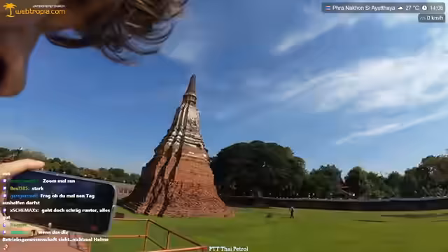 00:05:44Der Streamer begrüßt seine Zuschauer und stellt sich und den Ort vor. Er befindet sich in Ayutthaya, der ehemaligen Hauptstadt Thailands, und plant, Tempel zu besichtigen. Das Wetter wird als sehr heiß beschrieben, was den Streamer dazu bewegt, ein Elektro-Tuk-Tuk zu mieten, um sich fortzubewegen, anstatt zu Fuß zu gehen.