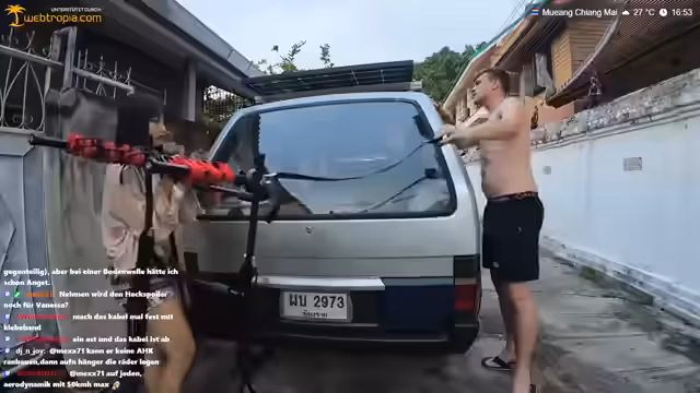 Ein Streamer berichtet von einem extrem günstigen Restaurantbesuch in Thailand und plant eine Reise nach Chiang Mai. Die Montage eines neu erworbenen Fahrradträgers für seinen Van erweist sich als schwierig. Eine unzureichende Anleitung und technische Probleme erschweren den Prozess. Externe Hilfe und die Suche nach Lösungen prägen die Montage, die schließlich mit einem Durchbruch endet, aber weiterhin Herausforderungen birgt.