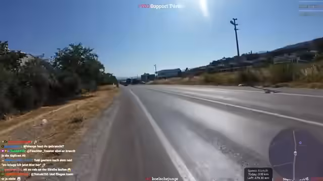 02:18:57Die Aufmerksamkeit richtet sich wieder auf die unmittelbare Laufumgebung. Der Streamer ist in einem Außenbezirk und beobachtet Arbeiter, die die Straßenmarkierungen erneuern, was er humorvoll als „draufjauchen“ bezeichnet. Er kommentiert die landschaftliche Einöde und stellt fest, dass es hier nichts als Felder und Berge gibt. Die Route verläuft entlang einer frisch asphaltierten Straße, und er bittet im Chat um Ratschläge bezüglich der Richtung. Es ist eine Phase der schlichten Beobachtung und des Durchkämpfens der Etappe.