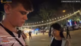 02:40:08Nach dem Kauf der Feuerwerkskörper wird auf einem öffentlichen Platz ein kleiner Test durchgeführt. Der Streamer bittet um Hilfe bei der Bedienung und Filmaufnahme. Es werden verschiedene Größen ausprobiert, wobei es anfangs zu technischen Problemen und Verwirrung bei der Handhabung kommt. Beim ersten Abschuss sind alle überrascht von der Lautstärke und der Stärke des Feuerwerks.