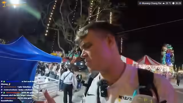 00:05:41Der Stream beginnt mit herzlichen Begrüßungen im Chat, gefolgt von Erklärungen des Hotelalltags. Es wird erwähnt, dass es sich um ein Hotel und nicht um eine Wohnung handelt. Besonderes Augenmerk liegt auf dem Balkon, auf dem aus Sicherheitsgründen nicht geraucht werden darf. Der Streamer berichtet vom Verkauf seines Motorrads für 28.000 Baht, wobei er betont, dass es ein fairer Deal war, besonders da der Kä 机械师 sich auskennt. Anschließend wird das Fest Leukratong vorgestellt, ein traditionelles thailändisches Wasserfest.