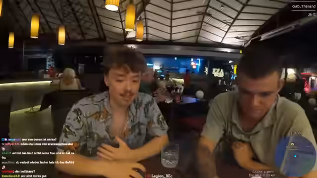 01:43:14Die Streamer teilen persönliche Erfahrungen von Thailand, darunter einen stressigen Krankenhausaufenthalt mit Lebensmittelvergiftung. Sie beschreiben teure aber gute Krankehaus-Erfahrungen und diskutieren günstige Auslandskrankenversicherungen. Es werden Erinnerungen an Dschungelwanderungen und Sprachbarrieren geteilt, wobei die Streamer unterschiedliche Englischvarianten verwenden je nach Gesprächspartner.