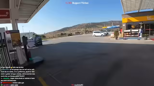 03:37:42Nach dem Warten auf den erfolglosen Bus beschließt der Streamer, doch zur Tankstelle zu laufen. Der Plan ist von dort per Taxi nach Milas zu fahren. Dabei kritisiert er, dass jeder Kilometer, der zu Fuß zurückgelegt wird, Zeit kostet, die für die Tageskilometer fehlt. Ein Bus nach Milas wird zwar gesichtet, aber es ist der falsche.