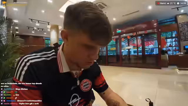 01:33:25Auf Anfrage aus dem Chat berichtet der Streamer über frühere Börsenerfahrung, bei der er im Alter von 18 Jahren mit einem kleinen Kapital von 1000 Euro in Aktien wie Nvidia und VW investierte, diese jedoch nach einem Jahr ohne großen Gewinn wieder verkaufte. Anschließend kehrt er zum aktuellen Programm zurück, da die geplante Touristenrouten wegen des Regens gestrichen werden müssen. Stattdessen bucht er spontan einen Kochkurs für 16 Uhr und nennt weitere Pläne wie einen nächtlichen Marktbesuch und einen möglichen Besuch der Train Street am darauffolgenden Tag.