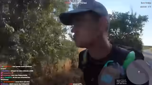 05:06:51Die körperlichen Beschwerden nehmen überhand. Der Streamer leidet unter starken Schmerzen im Rücken, die wie Stromschläge durch seinen Körper ziehen. Gleichzeitig kämpft er mit dem Verlust des Handybildschirms und der schlechten Internetverbindung. Mit noch etwa 25 Kilometer vor ihm, fühlt er sich mental und körperlich am Ende seiner Kräfte. Er betont, dass er nur noch eineinhalb Liter Wasser hat und sich unwohl und erschöpft zeigt, was seine Performance im Stream zusätzlich beeinträchtigt.