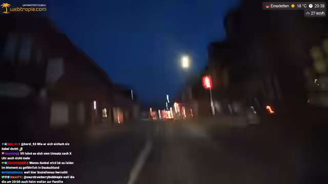 00:06:50Der Stream beginnt um 18:30 Uhr, nachdem der Streamer Thailand verlassen hat. Der Hauptinhalt der ersten Stunde dreht sich um die Reise mit einem Roller und seiner Begleitung Mali. Die Route führt durch Deutschland, wobei der Streamer zunächst unsicher über das genaue Ziel ist. Er erwähnt mehrere Ortsnamen wie Kassel und Scheidehausen und findet den Namen der Stadt lustig. Der Plan für den Abend ist klar: man wird unterwegs übernachten, entweder im Zelt oder in einer Schutzhütte. Dabei wird der Stress und die ungewohnte Verkehrssituation in Deutschland im Vergleich zu Thailand thematisiert.