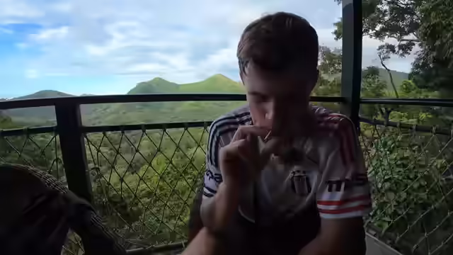 03:30:47Die Sicherheit der Konstruktion wird in Frage gestellt, da sie wackelt und aus einem Lehmberg besteht. Es wird vermutet, dass es sich um eine Schwinglagerung handelt, die für mehr Flexibilität sorgt. Der Entschluss, mit der Seilbahn wieder runterzufahren, wird gefasst. Die Zip-Line kostet 25 Dollar, was im Vergleich zu ähnlichen Angeboten in Thailand als guter Preis angesehen wird. Es wird ein Bier bestellt, um Mut für die Zip-Line zu fassen. Es wird gezögert, über eine unsicher wirkende Brücke zu laufen, da Bedenken hinsichtlich der Sicherheitsstandards in Laos bestehen. Die Aussicht von der Brücke wird als atemberaubend beschrieben. Es wird überlegt, Monte zu besuchen und mit ihm ohne Luxus zu reisen. Es wird vermutet, dass Monte Thailand feiern würde, aber es wäre etwas anderes, als nach Las Vegas zu fliegen, weil der Standard in Asien anders ist. Es wird überlegt, was Monte in Thailand mit seinem Geld machen würde, außer für Frauen und Feiern. Es wird erwähnt, dass man für 1000 Euro die Nacht in Thailand bereits sehr luxuriös wohnen kann. Angst vor der Höhe wird geäußert, aber der Entschluss gefasst, die Zip-Line zu machen.