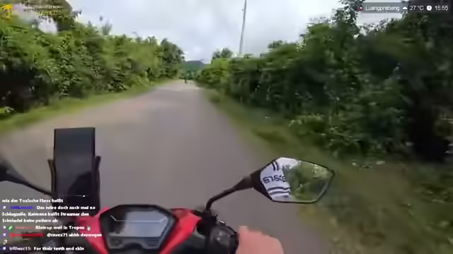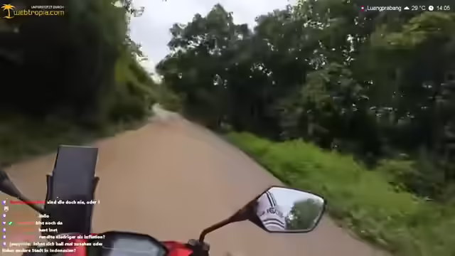 02:25:37Die Fahrt führt vorbei an Feldern, bei denen spekuliert wird, ob es sich um illegalen Mohnanbau handelt, was jedoch als Tomatenfeld entlarvt wird. Es folgt die Feststellung, dass man sich in Laos befindet und nicht in Malaysia. Die Fahrt geht weiter, vorbei an einem auffälligen Haus, was zu weiteren Erkundungen anregt. Es wird die Sorge geäußert, dass der Wasserfall bald schließt, was den Zeitdruck erhöht. Die Schönheit der Umgebung wird hervorgehoben, während auf einer 125er gefahren wird. Es wird die Rutschigkeit der Straße bemängelt und die Notwendigkeit betont, rechts zu fahren. Der Gedanke an ein Hotel in der Stadt wird erwähnt, wobei Agoda als bevorzugte Buchungsplattform in Asien genannt wird. Die chinesische Präsenz in der Region wird festgestellt, wobei auf chinesische Schilder und Infrastruktur hingewiesen wird. Die Möglichkeit von Krokodilen in den Flüssen wird diskutiert, wobei betont wird, dass sie in touristischen Gebieten aufgrund menschlicher Aktivität weniger verbreitet sind. Geschichten über Krokodile in Bangkok und Phuket werden erzählt, um die Vorsicht vor diesen Tieren zu unterstreichen.