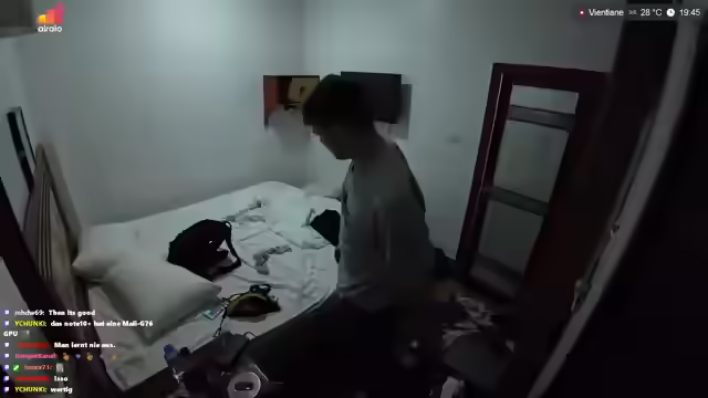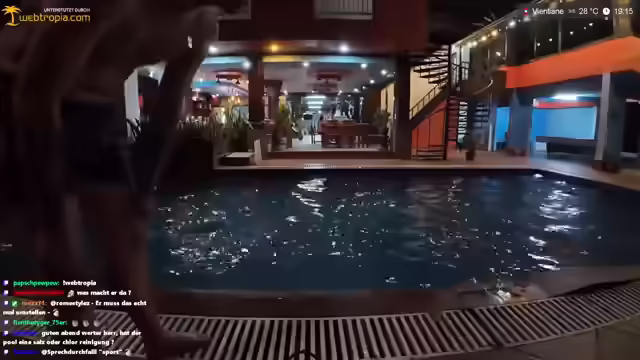 03:49:48Der Aufenthalt in Laos wird als etwas teurer im Vergleich zu Wang Vieng beschrieben, insbesondere was die Hotels betrifft. Trotz begrenzter Auswahl und ausgebuchter Situation über das Wochenende wird das Hostel als akzeptabel empfunden, primär als Ort zum Schlafen. Es wird ein bevorstehender Abend geplant, der mit Schwimmen im Pool beginnt, gefolgt vom Besuch eines Straßenfestes und möglicherweise dem Ausklang in einer Bar. Der Streamer reflektiert humorvoll über sein 'Eintauchen' in Laos, das weniger elegant ausfiel als geplant. Er schildert eine Anekdote vom Schwimmen mit geschlossenen Augen, bei dem er versehentlich gegen die Wand stieß, und scherzt über eine mögliche Mafia-Boss-Frisur mit zurückgegelten Haaren und Sonnenbrille. Anschließend wird der Plan gefasst, sich im Zimmer umzuziehen, wobei Bedenken geäußert werden, wie die nassen Sachen transportiert werden sollen.