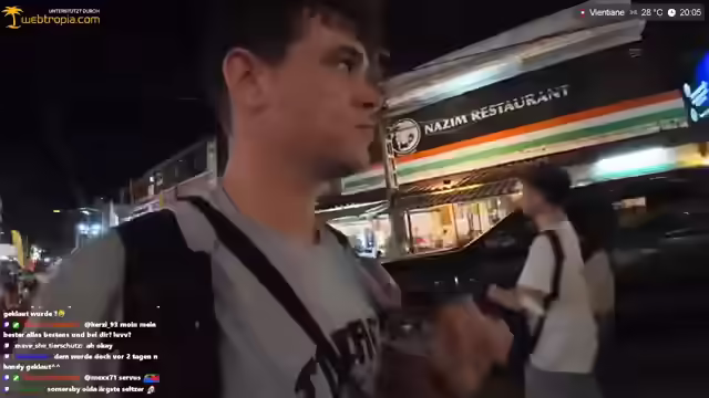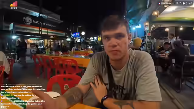 08:48:13Es wird über Beobachtungen von zwischenmenschlichen Interaktionen gesprochen, insbesondere über eine Engländerin, die sich anscheinend für Asiaten interessiert. Der Streamer unterhält sich mit verschiedenen Personen, darunter eine Frau, die in Laos lebt und arbeitet, und eine andere, die aus den Philippinen stammt und in Thailand lebt. Es geht um Visaprobleme, Lebenshaltungskosten und die Arbeit als Lehrerin. Der Streamer tauscht sich über E-Mails und Google Drive aus. Der Abend soll mit einem gemeinsamen Besuch von Bars und Clubs ausklingen. Der Streamer erzählt von einem Vorfall, bei dem er in einem Club war, in dem die meisten Besucher erst 16 Jahre alt waren, was er als unangenehm empfand. Es wird überlegt, ob die Weitergabe der E-Mail-Adresse problematisch sein könnte, und Pläne für den Abend werden geschmiedet, inklusive einer Katzenwäsche und einem schnellen Ausflug.
