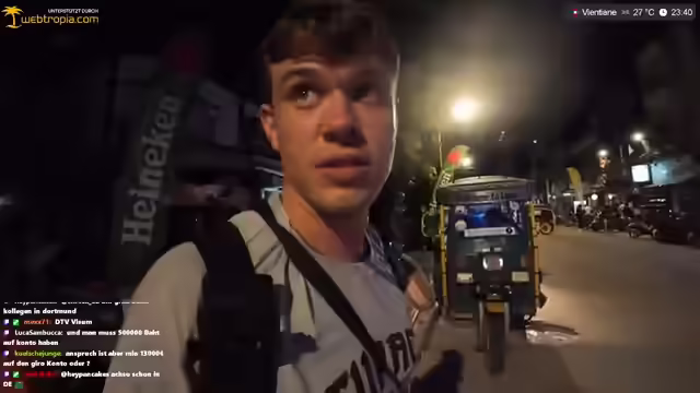 00:08:04Es wird humorvoll überlegt, sich illegal nach Thailand über den Landweg einzuschmuggeln, da die Einreise ohne Visum relativ einfach sein soll. Der Plan wird jedoch als Scherz abgetan. Der Streamer berichtet von Problemen mit seinem Visumantrag, da er bei der thailändischen Botschaft 10.000 Baht in bar bezahlen musste, was sich aufgrund von Schwierigkeiten beim Geldwechsel von Laos-Kip in Thai-Baht als schwierig erwies. Es wird vermutet, dass dies mit Geldwäsche zusammenhängen könnte, da normale Wechselstuben den Umtausch verweigern. Schließlich konnte er das Geld bei der Hauptstelle einer Bank mit der Quittung der Botschaft wechseln. Alternativ gäbe es noch Schwarzmarkthändler vor der Botschaft oder die Möglichkeit, einen thailändischen Bankautomaten auf der Brücke Richtung Thailand zu nutzen, ohne die Grenze zu überqueren. Dies soll getestet werden, da es für viele wichtig sein könnte, die einen Visa-Run machen müssen.