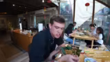 05:41:39Der Streamer probiert verschiedene lokale Spezialitäten und äußert seine Ekelreaktionen. Er isst Wasserbüffelhaut, die mit Haaren noch versehen ist, und beschreibt die Zubereitung als abstoßend, da sie mit einer Drahtbürste bearbeitet werden muss. Bei einem anderen Gericht stellt er überrascht fest, dass es trotz knuspriger äußerer Konsistenz innen feucht und weich ist, was er zunächst als eklig empfindet. Später probiert er Daifuku, eine süße japanische Speise, und Marshmallow-Eis mit Schokolade, wobei er seine Vorliebe für herzhafte Nahrung betont.