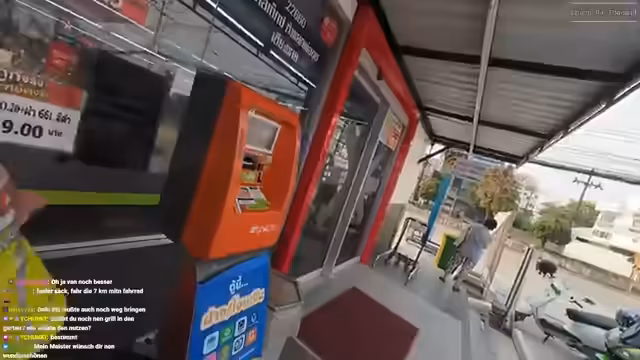 07:47:02Der Streamer berichtet über kulturelle Gepflogenheiten in Thailand, wie das Ausziehen der Schuhe in gewissen Gebäuden wie Wäschereien. Es folgen verschiedene Alltagsgeräusche und kurze, unverständliche Dialoge mit einer Person namens Mali. Die Luftverschmutzung in Chiang Mai wird thematisiert und der Streamer liest Messwerte aus. Er schlägt eine hypothetische Frage über das Verhältnis von Geld und Partnerschaft vor und kauft Mali spontan eine Überraschung auf dem Markt.