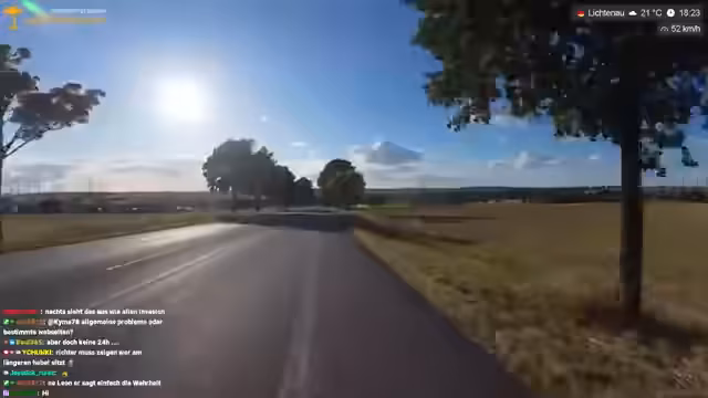 06:31:07Bei der Fahrt durch Rimbeck entdeckt der Streamer eine Traktormesse. Er filmt mehrere große und teure Landmaschinen, wie einen Zuckerrübenernter im Wert von über 280.000 Euro, und beschreibt die Veranstaltung als Hauptattraktion der Region. Kurz darauf ärgert er sich jedoch über andere Verkehrsteilnehmer, insbesondere über ein Auto, das innerorts überholt. Er reagiert verärgert auf diese als gefährlich empfundene Fahrweise und spricht von einem ständigen Ungehorsam der Verkehrsteilnehmer, was zu einer hitzigen Diskussion im Chat führt.