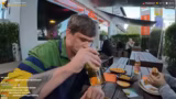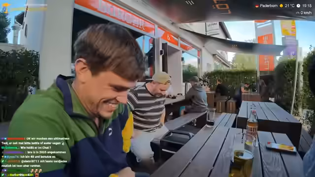 07:15:53Nach mehreren Stunden Fahrt erreichen die Streamer Paderborn. Sie machen Halt im Restaurant 'Die Lötlampe', einem Burger-Laden, der nach eigenen Angaben die zweitälteste Kneipe der Stadt ist. Der Streamer ist beeindruckt von der Qualität und Frische der Burger, die sie frisch zubereiten. Er bestellt einen 'Röstzwiebelburger' und probiert verschiedene Saucen. Währendessen unterhält er sich mit dem Betreiber, der ihm die Geschichte des Lokals erklärt und ein Club namens 'Container' in der Nähe erwähnt, wo sie schlafen könnten, es aber aber als sehr dreckig beschreibt.