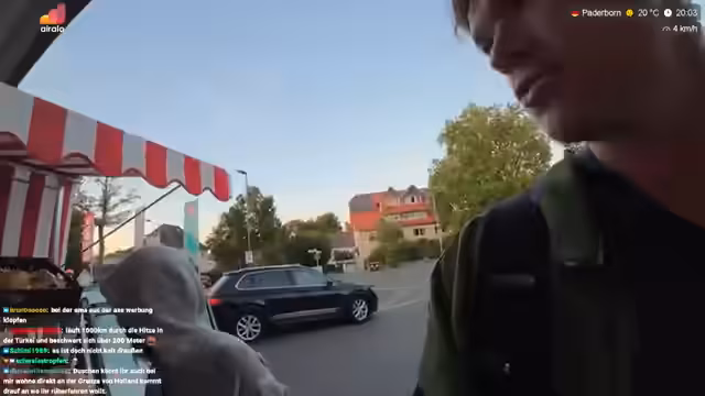02:13:46Während der Fahrt erreicht die Gruppe eine Nachricht von einem Zuschauer aus Paderborn, der sie zu einem kostenlosen Essen in seinem Restaurant einlädt. Dies wird im Discord als Gelegenheit genutzt und als möglicher Stopp für den Abend in Betracht gezogen. Gleichzeitig wird der anfängliche Plan, bis Paderborn zu fahren, kritisch hinterfragt, da die Distanz von 120 Kilometern und der verbleibende Zeit drängen. Die Gruppe zögert, ob sie das Ziel noch erreichen können oder einen näheren Stopp suchen sollen.