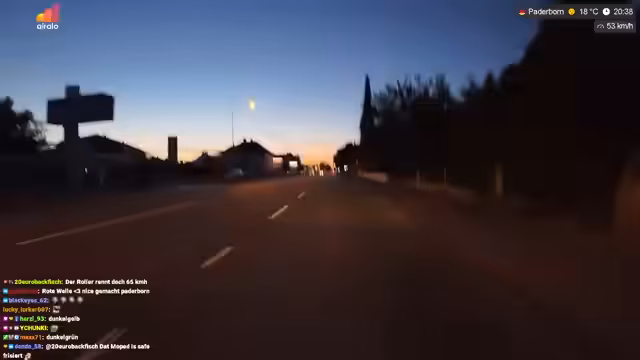 04:09:06Eine der Hauptthemen des Streams ist die Diskussion über das Fahren auf einem Fahrradweg mit dem 50ccm-Roller. Der Streamer argumentiert, dass er auf dem übersichtlichen Radweg mit 30 km/h sicherer fahre als auf einer schnell befahrenen Landstraße, wo er den Verkehr behindern würde. Er fühlt sich ungerecht kritisiert und ist der Meinung, dass die meisten Autofahrer die Regeln nicht einhalten. Er erklärt, dass er ausländischer Fahrer sei und sich nicht an alle deutschen Vorschriften halten müsse, obwohl er sich größtenteils an die Regeln halte, und zeigt gleichzeitig an, dass er auf mögliche Blitzer und Polizeikontrollen achten würde.