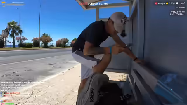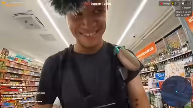 03:33:03Nach Kilometerangaben Ankunft in der Zielstadt Alanya. Der Streamer ist beeindruckt von der Stadt, die ihm sauberer und schöner als erwartet erscheint und im Gegensatz zu Siede weniger von großen Hotels dominiert wird. Er plant noch alle Daten wie Schritte und Kilometer später auf Instagram zu posten, denkt aber auch über die politische Situation von Millionen von Geflüchteten in der Türkei nach.
