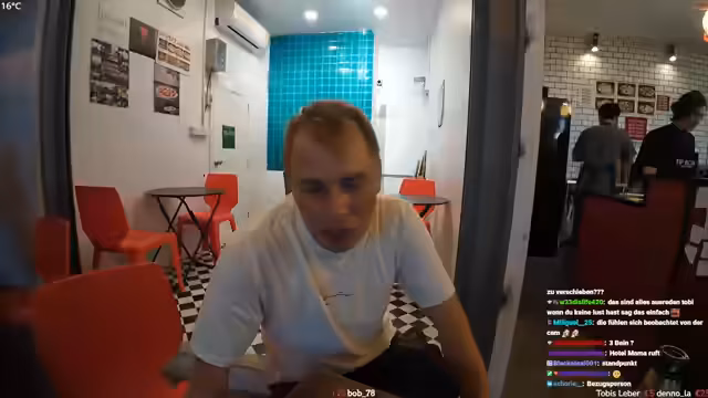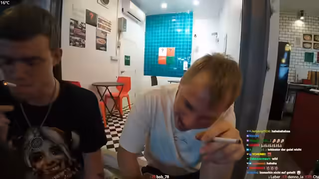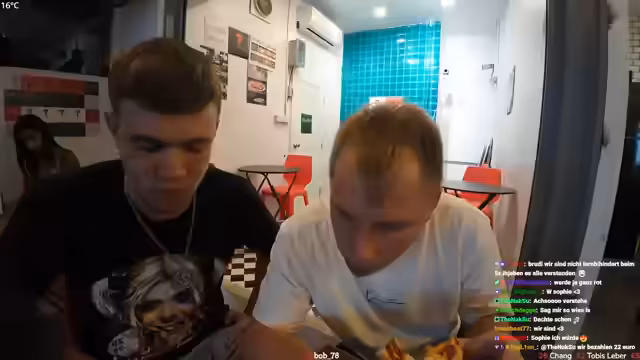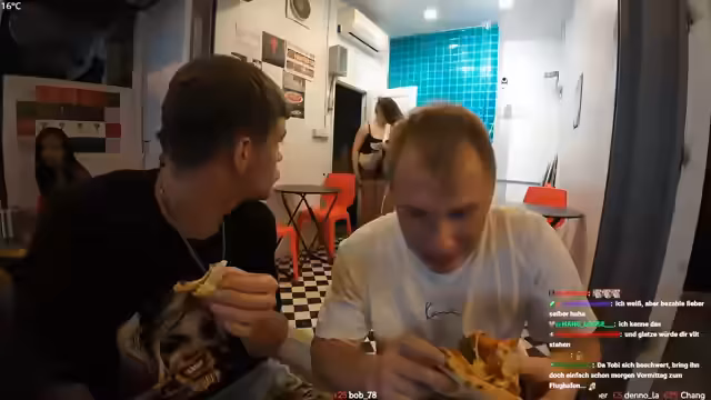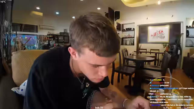 11:15:00Der Streamer unterhält sich mit dem Chat über die Uhrzeit in Thailand, bietet einen Drink an und erwähnt seinen eigenen geringen Alkoholkonsum. Gleichzeitig gibt es die Information, dass die Pizzeria wegen der späten Stunde geschlossen hat. Dieser Abschnitt fängt die lockere, interaktive Stimmung und die logistische Veränderung des Ortes ein.