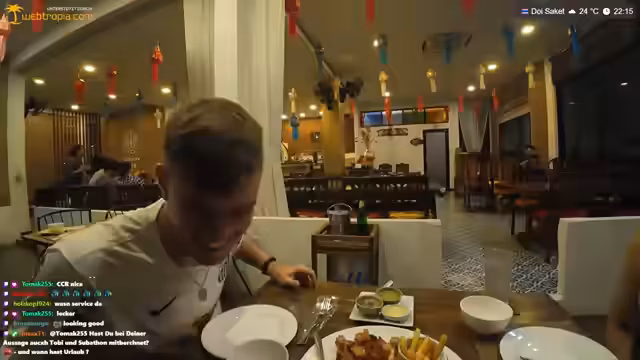 07:24:37Nach der anstrengenden Fahrt kommt der Streamer im Hotel an, während Mali die Verfügbarkeit von Zimmern prüft. Der Abschleppdienst arbeitet privat, aber auch für Krankenhäuser, was seine Professionalität unterstreicht. In Thailand ist es üblich, dass private Abschleppdienste ohne große Formalitäten arbeiten, solange es sich nicht um ein großes Geschäft handelt. Der Streamer ist im Auto eingeschlossen und kann nicht herauskommen, da er den Sitz nicht verstellen kann. Das Hotelzimmer kostet 700 Baht (ca. 20 Euro) pro Nacht und bietet drei Betten, darunter ein Doppelbett, was es ideal für Familien oder Gruppen macht, die günstig übernachten möchten. Der Streamer wünscht sich solche einfachen und sauberen Hotels auch in Europa. Im Restaurant entdeckt er zu seiner Überraschung eine Schweinshaxe, die frittiert serviert wird, und findet die thailändischen Soßen dazu gewöhnungsbedürftig. Er genießt die lokale Musik, die einen besonderen Vibe verbreitet.