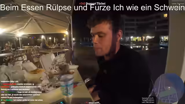 00:00:00Der Stream beginnt mit technischen Schwierigkeiten. Das OBS-System stürzt nach etwa 13 Stunden Laufzeit ab, vermutlich aufgrund eines Multistreaming-Tools. Streamer muss das Programm neu starten. Parallel dazu erwähnt Chat-Teilnehmer Lennatn mit einem ungewöhnlichen Schlafrhythmus und ein weiterer User wird als Dandy angesprochen. Eine spontane Rauchpause führt zu einer ungewöhnlichen Begründung: Der Streamer raucht, um Hunger zu unterdrücken.