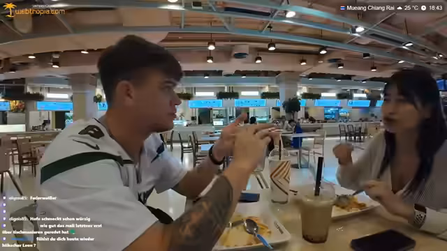 03:35:27Der Streamer erwähnt, dass er bei vier verschiedenen Banken ist und fragt, warum er nicht alles in einer Bank hat. Er findet es bemerkenswert, dass in Thailand viele Schwule, Tomboys und Ladyboys herumlaufen, ohne dass es ungewöhnlich wirkt. Er plant, Silvester in Phuket zu feiern.