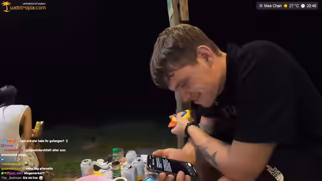 02:49:09Nach Ankunft am Angelplatz zeigt sich sofort Enttäuschung, da das vorbereitete Equipment, insbesondere das Gewicht für die Angelrute, fehlt. Trotzdem wird mit einem improvisierten, künstlichen Fisch als Köder begonnen, was anfang erfolglos bleibt. Der Streamer äußert Frustration über die mangelnde Vorbereitung und bemerkt, dass der See künstlich angelegt und sehr tief ist, was das Werfen erschwert. Die ersten Versuche mit einem Bananenstück als Köder werden als verrückt, aber möglich für Friedfische erachtet.