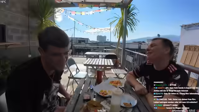 01:51:19Für seinen Freund Tobi gibt der Streamer praktische Tipps für seinen langen Aufenthalt am Flughafen Bangkok (BKK). Er rät dazu, das Essen in den unteren Ebenen des Flughafens zu suchen, da es dort deutlich günstiger ist als oben. Zudem empfiehlt er die Nutzung einer Flughafen-App, um den Flug live zu verfolgen und bei eventuellen Verspätungen informiert zu bleiben.