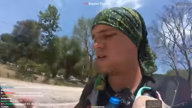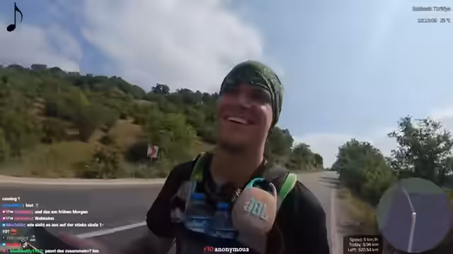 00:06:23Für den Tag plant der Streamer, 40 Kilometer zu marschieren, was er als notwendig erachtet. Er leidet unter starken Hüftschmerzen und hat übelse Wundgefühle am Gesäß. Um Schlimmeres zu verhindern, hat er sein Dehnen vernachlässigt und möchte dies zukünftig in Pausen und nach den Etappen nachholen, zusätzlich zum Magnesium-Verzehr.