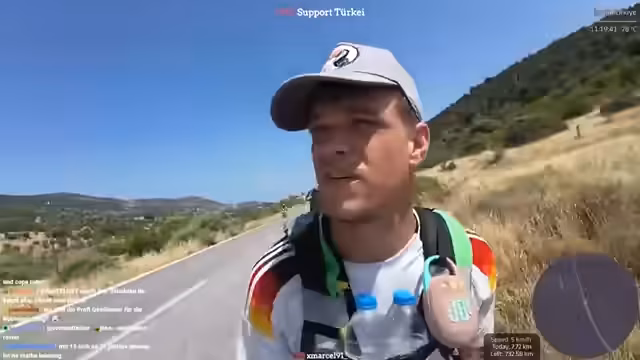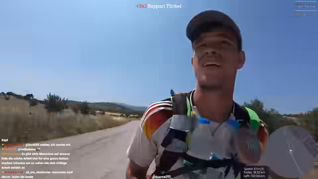 05:09:41Die aktuelle Lauf-Challenge in der Türkei stellt den Streamer vor physische Herausforderungen. Obwohl er bei 35 Grad Hitze läuft und gelegentlich joggen möchte, stellt er fest, dass Joggen mit Rucksack ineffizient ist. Die Route entlang des Highways ist oft schmal, und Gegenverkehr ist eine ständige Gefahr. Der Streamer plant seine Route sorgfältig, um Abkürzungen zu nutzen und versucht, jeden Tag voranzukommen.