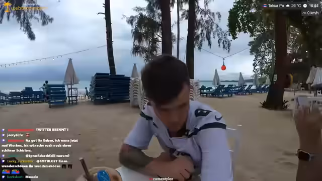 02:16:15Im Chat wird ein Casino-Spiel mit Channel Points eingeführt, bei dem die Zuschauer Lost-Taler gewinnen können. Es wird diskutiert, ob dies auf lange Sicht zu Problemen führen könnte, da es die Chat-Interaktion beeinträchtigen könnte. Der Streamer äußert Bedenken, dass er, wenn die Leute ständig spielen und er den Chat nicht mehr lesen kann, selbst ausrasten könnte. Er schlägt vor, das Spiel auf einmal pro Tag pro Person zu begrenzen. Trotzdem haben die Zuschauer Spaß am Casino-Spiel. Anschließend besuchen sie den Strand, der trotz des bewölkten Wetters als nett empfunden wird. Die geringe Anzahl an Liegen und Schirmen wird positiv hervorgehoben. Es wird jedoch festgestellt, dass das Wasser viele Steine enthält, was das Schwimmen unangenehm macht. Es beginnt zu regnen, und die Diskussion über den Tsunami-Strand und die Auswirkungen des Tsunamis in Indonesien und Khao Lak wird fortgesetzt. Das Museum wird erneut als schlechte Erfahrung bezeichnet, da die Informationen auch online verfügbar sind und der Eintrittspreis nicht gerechtfertigt ist. Der Streamer und Mali fahren mit dem Roller zurück, wobei die schlechten Bremsen des Rollers weiterhin ein Problem darstellen. Die Stimmung ist angespannt, und es kommt zu weiteren Diskussionen zwischen den beiden. Der Streamer ist müde vom Fahren und Mali ist gestresst. Sie beschließen, nicht zu weit zu fahren und den Tag ausklingen zu lassen.