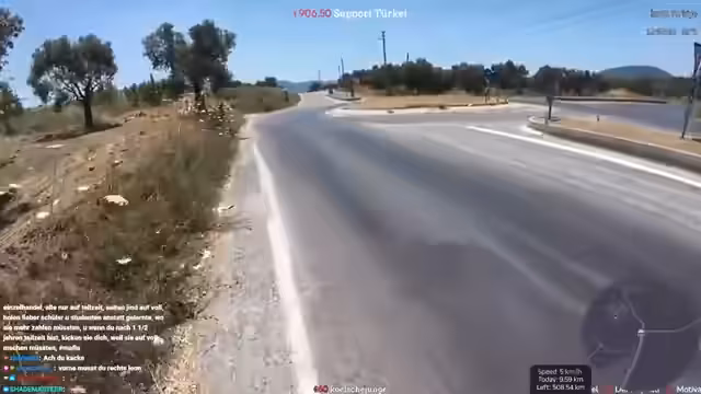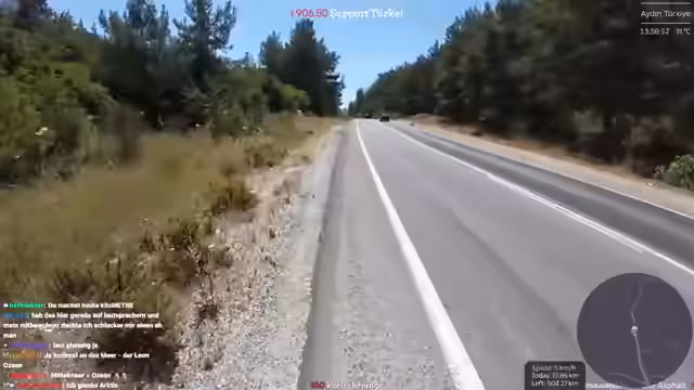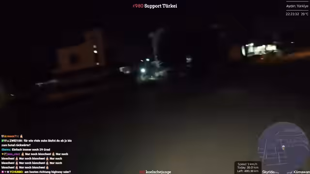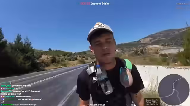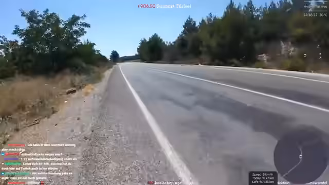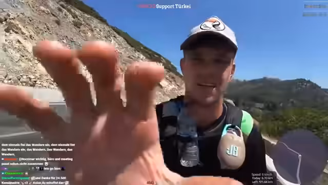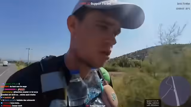 02:44:52Der Streamer befindet sich beim Verlassen von Selçuk und hat den antiken Artemis-Tempel, eines der sieben antiken Weltwunder, passiert. Er plant, heute etwa 40 Kilometer bei extremem Hitze zu laufen. Aufgrund der hohen Temperaturen und der großen Highways wird die Route angepasst. Stattdessen durchs Inland wird die Küste über Didim mit einer Fähre weiter Richtung Antalya angesteuert, um bessere Straßen und Internetverbindung zu nutzen. Die Hälfte der 1000-Kilometer-Marke wurde damit erreicht.