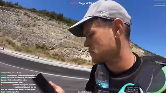 02:57:14Der Streamer klagt über die extreme, anhaltende Hitze von konstant 35 Grad Celsius im Schatten, die den Asphalt auf bis zu 60 Grad erhitzt. Dies führt zu körperlichen Problemen wie starkem Schwitzen, der sich in den Augen sammelt und die Sicht behindert. Aufgrund der hohen Temperaturen konnte er heute auch nicht wie geplant die volle Strecke laufen. Zudem musste er wegen einer leeren SIM-Karte eine Zwangspause einlegen und überlegt, das geplante Telefonat vorzuziehen, da die Internetverbindung auf der Strecke ungewiss ist.