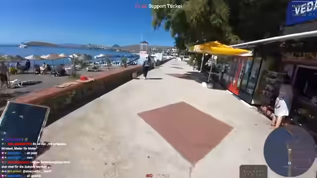 09:35:31Aufgrund der aktuellen Lage und der verbleibenden Zeit passt der Streamer sein Tagesziel an. Anstatt direkt zum Hafen zu laufen, entscheidet er sich, zum Hotel zurückzukehren, um zusätzliche Kilometer zu absolvieren und sein Tagesziel von 35 Kilometern zu erreichen. Er kommuniziert diese Änderung und seine aktuelle Position mit seinem Navigator Tomach und der Community.