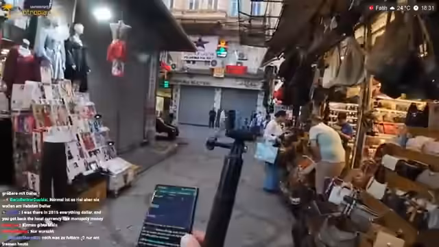 06:28:48Es wird der Besuch des Grand Bazaar angekündigt, wobei der Streamer bemerkt, dass er eventuell seine aktuellen Schuhe wegwerfen müsste, wenn er neue kauft, da er kein zusätzliches Gepäck hat. Der Zigarettengeruch im Bazaar wird als extrem beschrieben. Der Streamer kommentiert, dass viele Waren im Bazaar gefälscht oder Secondhand sind und äußert Bedenken, dort eine gebrauchte Uhr zu kaufen, da diese möglicherweise gestohlen oder gefälscht sein könnte. Er erzählt von einem Vorfall, bei dem ihm auf einer Brücke gestohlene Parfüms mit Original-Preisschildern angeboten wurden. Der Streamer entdeckt einen Goldladen und fragt sich, ob die angebotenen Artikel echt sind. Er erwähnt, dass die Kamera manchmal flackert, aber sich normalerweise wieder stabilisiert.