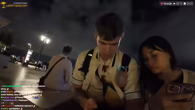 12:03:35Auf dem Taksim-Platz werden die nächtlichen Aktivitäten und die belebte Atmosphäre der Stadt beschrieben. Der Streamer zeigt sich beeindruckt von der Menschenmenge, selbst spät an einem Wochentag. Dabei werden gesellschaftliche Phänomene wie arme Kinder, die Snacks verkaufen, und aggressive Ladyboys beobachtet und diskutiert. Diese Situationen führen zu einem ethischen Dilemma zwischen Mitgefühl und der Vermeidung, solche Strukturen zu unterstützen.