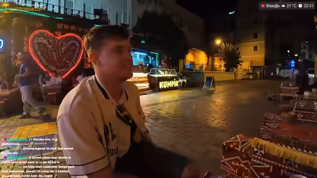 10:17:53Zunächst werden die hohen Parkgebühren in Istanbul thematisiert, die selbst für deutsche Verhältnisse teuer erscheinen. Man plant, eine Rooftop-Bar zu besuchen, und es wird diskutiert, ob man den richtigen Weg nimmt. Währenddessen wird die lebendige Bar-Szene in Istanbul gelobt, insbesondere die restaurierten und dekorierten Bereiche. Es wird festgestellt, dass Istanbul einen westlichen Einfluss hat, was sich unter anderem in der Techno-Szene zeigt. Man berichtet von einer Begegnung mit jemandem, der direkt aus einem Techno-Club kam und von seinen Drogenerfahrungen erzählte. Es wird angemerkt, dass man die guten Clubs in Istanbul eher im Underground finden muss und nicht so leicht von außen erkennt. Bezüglich der Essenspläne wird ein Restaurant für Kumpir gesucht, und man lässt sich von Mali, der Begleitung, führen, wobei es zu einigen Missverständnissen bezüglich des Weges kommt. Im Restaurant angekommen, wird die Vielfalt der Zutaten für den Kumpir bestaunt, darunter verschiedene Salate, Käse und Soßen. Abschließend wird der Clip-Community ein Hinweis gegeben, wie sie am besten Clips erstellen können, um dem Streamer zu helfen, wichtige Momente im VOD schnell wiederzufinden.