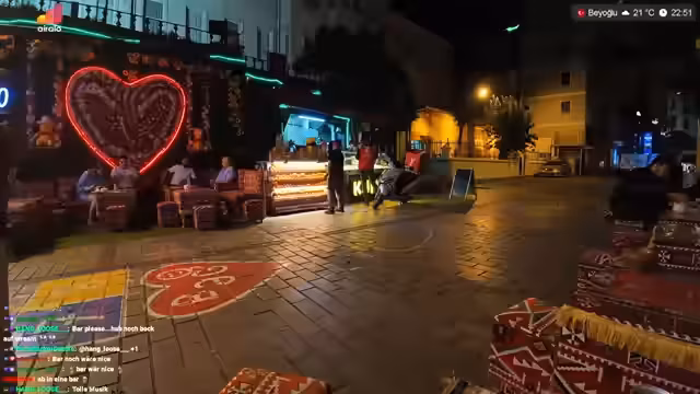12:11:33Es wird über den Umgang mit aufdringlichen Verkäufern, insbesondere Kindern, diskutiert. Einerseits möchte man sie nicht unterstützen, andererseits sieht man in ihnen auch Kinder, die von ihren Eltern möglicherweise dazu gezwungen werden, etwas zu verkaufen. Man erzählt von einer Situation, in der man fast von einer Prostituierten angegriffen wurde, weil diese dachte, sie würde gefilmt. Es stellt sich heraus, dass es sich möglicherweise um einen Ladyboy handelte. Anschließend wird eine Person mit einer auffälligen Frisur auf dem Taksim-Platz entdeckt, die schläft. Es wird festgestellt, dass Istanbul niemals zur Ruhe kommt und es immer etwas zu sehen gibt. Abschließend werden noch frische und gut beleuchtete Früchte bewundert, und es wird überlegt, ob man noch etwas unternehmen soll, bevor man schlafen geht. Der Plan für den nächsten Tag ist, die Prinzeninseln zu besuchen, weshalb man nicht zu spät ins Bett gehen möchte. Man kauft noch ein Bier für sich und die Begleitung, bevor man sich verabschiedet und den Stream für heute beendet.