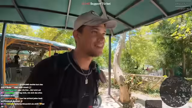 10:20:00Nachdem er im Stream eine leichte Depression über das endende Abenteuer erwähnt hat, erreicht der Streamer einen Wasserfall. Er zeigt sich beeindruckt von der glasklaren Süßwasserquelle und dem Regenbogen, der über dem Fluss zu sehen ist. Er ist verblüfft von Anglern, die direkt vor dem Wasserfall stehen, und spekuliert über die mögliche Fischpopulation und die starken Strömungen. Des Weiteren kritisiert er den Baustil der türkischen Mehrfamilienhäuser, der ihm nicht gefällt, und äußert den Wunsch, endlich im angepeilten Hotel anzukommen.