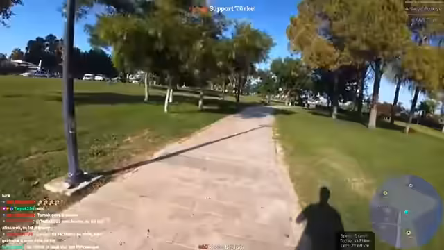 03:31:53Nachdem der Streamer und sein Begleiter den Park erreicht haben, werden sie von der Attraktivität der Umgebung beeindruckt. Sie planen, in das Wasser zu springen und sich dort eine wohlige Pause zu gönnen. Der Streamer hat nach 13 Kilometer Lauf starken Hunger und Durst und sucht nach einer Möglichkeit, etwas zu essen. Er beschreibt das positive und entspannte Verhältnis der Türken zu Touristen mit Kameras.